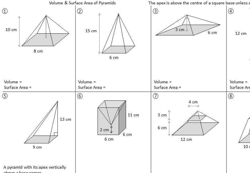 Surface area of pyramid worksheets are an important resource for both teachers and students. They provide an effective way for students to practice their skills and for teachers to assess their understanding. These worksheets are also a great way for students to become familiar with the concept of surface area and apply it to real-life situations.