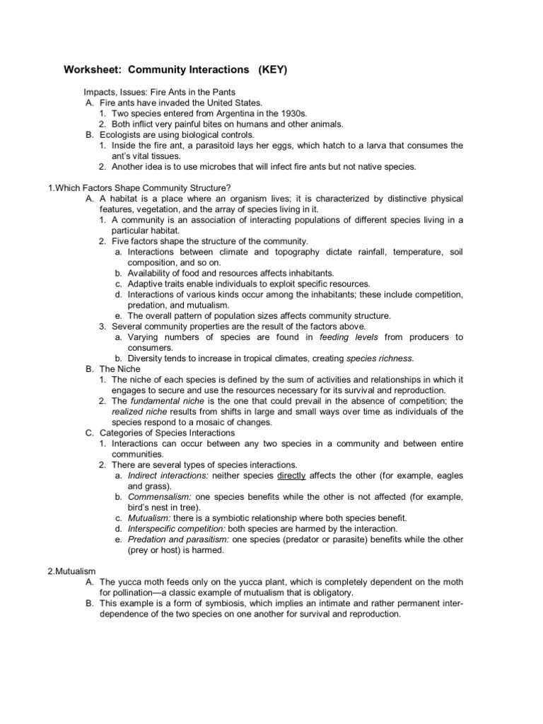 The Symbiosis Worksheet Answer Key provides a comprehensive guide to understanding the different categories of symbiosis. It begins by defining the types of symbiotic relationships, such as mutualism, commensalism, and parasitism. It then describes the different benefits that each type of relationship can provide, such as food, shelter, protection, and more. The worksheet also covers the different ways that species interact, such as competition, predation, and symbiosis.