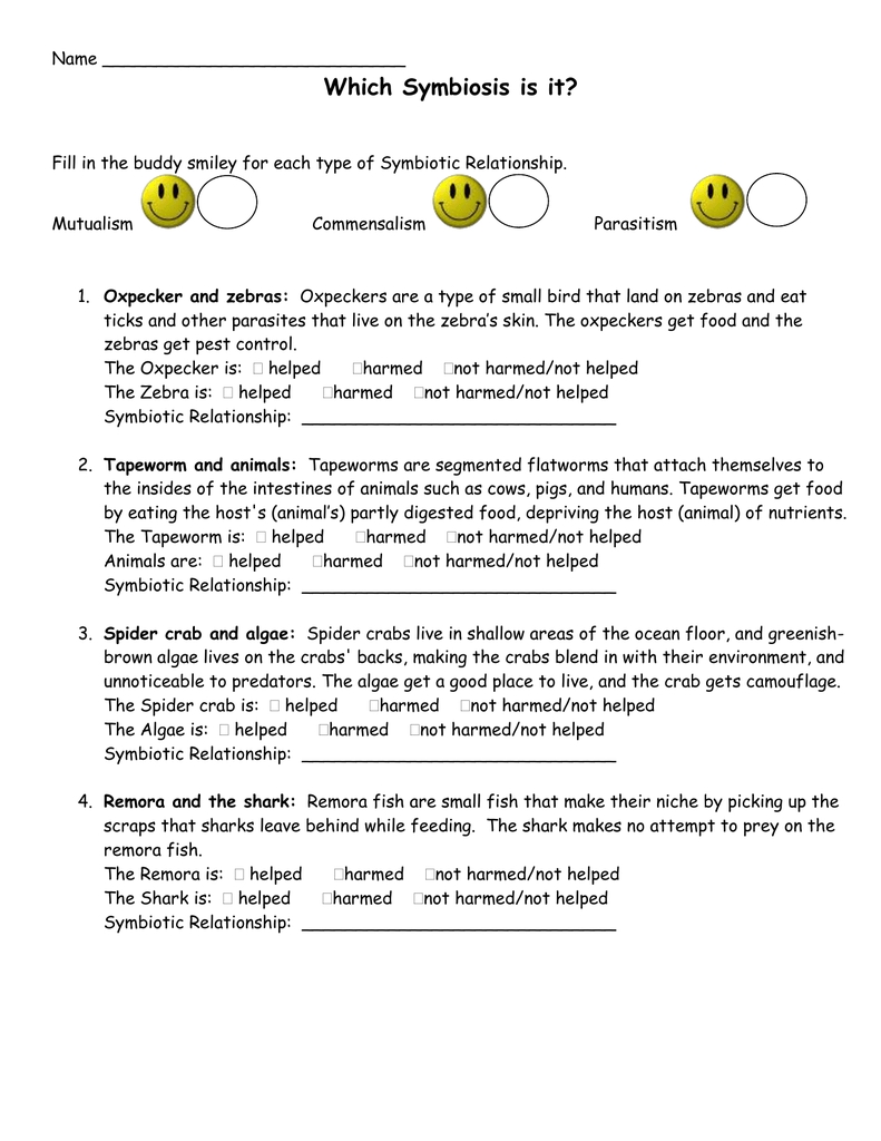 The Symbiosis Worksheet Answer Key is an invaluable resource for anyone trying to understand the complexities of symbiotic relationships. It provides a comprehensive overview of the various types of symbiosis, their benefits, and the dynamics between the species involved. By using a Symbiosis Worksheet Answer Key, students can gain a better understanding of the subject, allowing them to make informed decisions about the relationships they observe in nature.