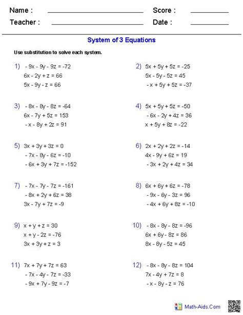 When solving systems of equations, it is important for students to be aware of the common mistakes that are often made. A review worksheet is a valuable tool for helping students to identify and avoid these errors.