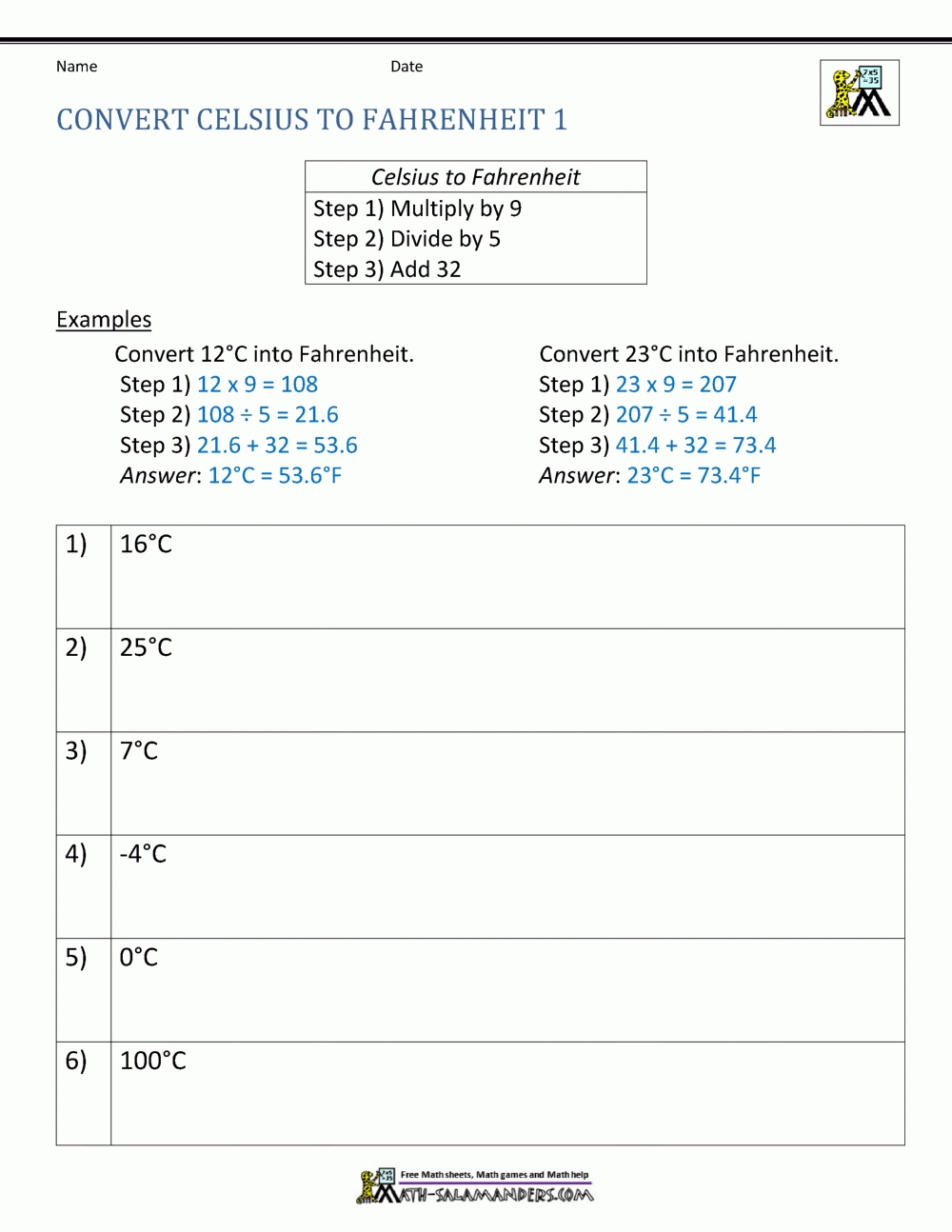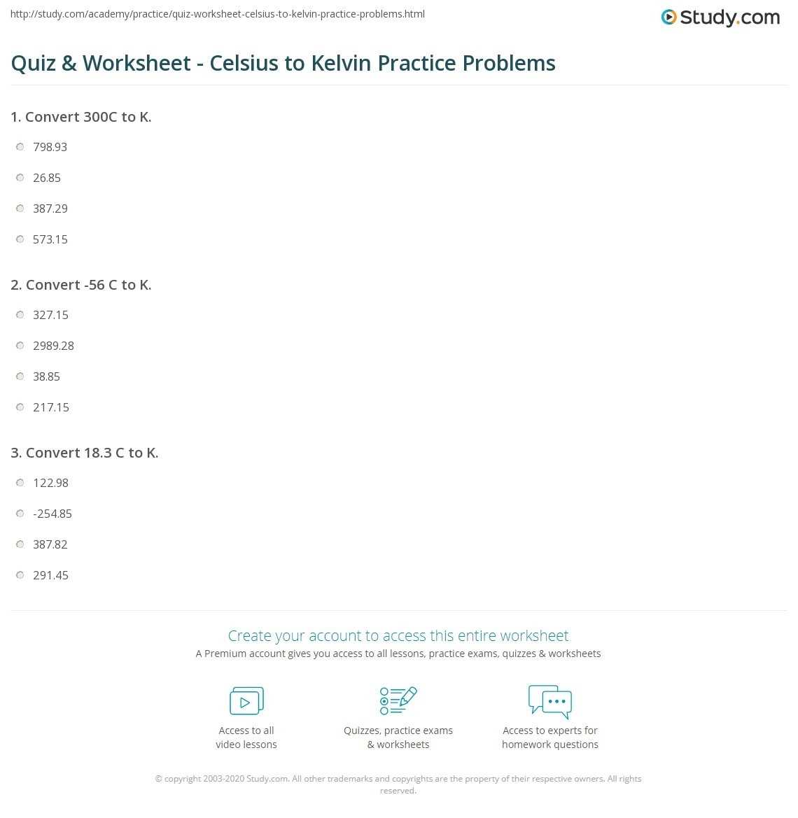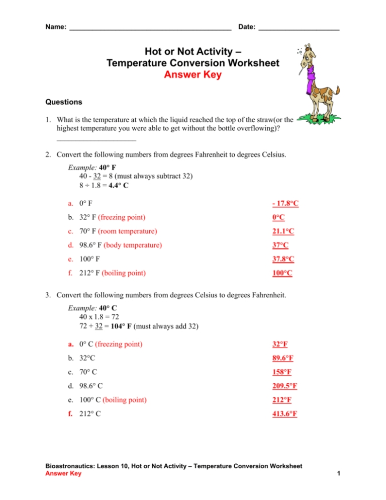 When completing a temperature conversion worksheet, students should be able to answer the following questions: