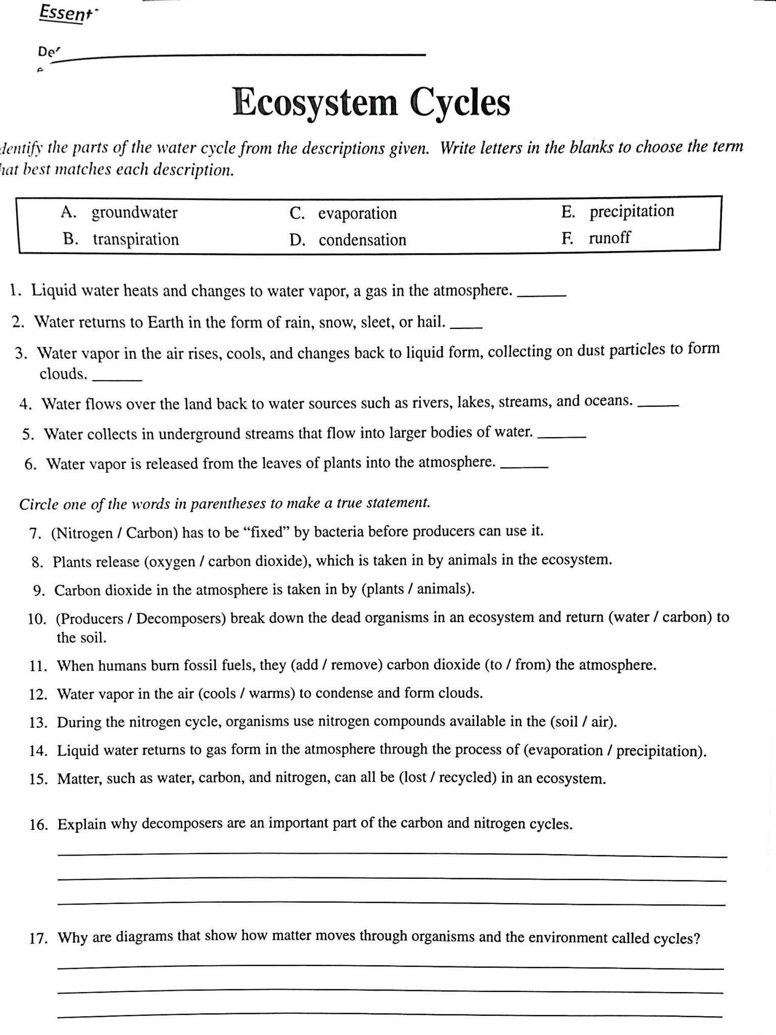 5 photos of the "The Carbon Cycle Worksheet Answers"