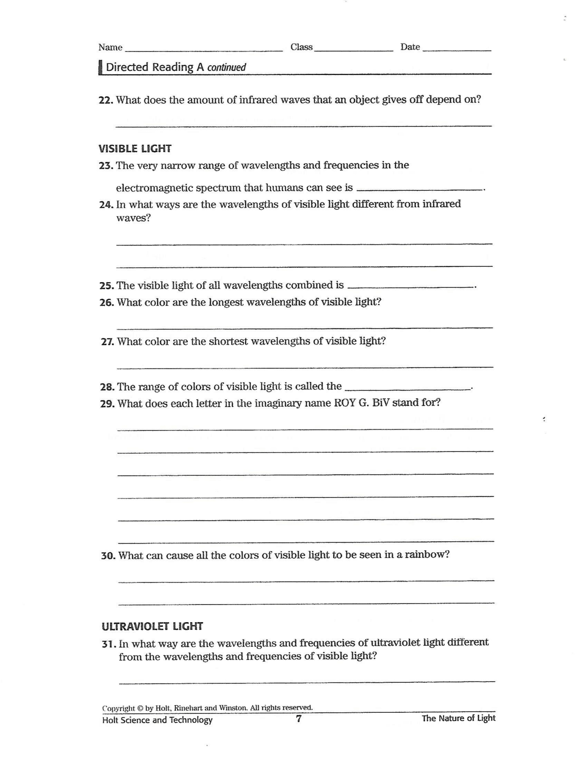 The worksheet can also be used to help students better understand the phenomenon of light and its various properties. By exploring the different colors, intensities, and wavelengths of light, students can gain a deeper understanding of the physical principles governing the behavior of light. Furthermore, the worksheet can be used to discuss how light can be used to create images and other forms of visual information.
