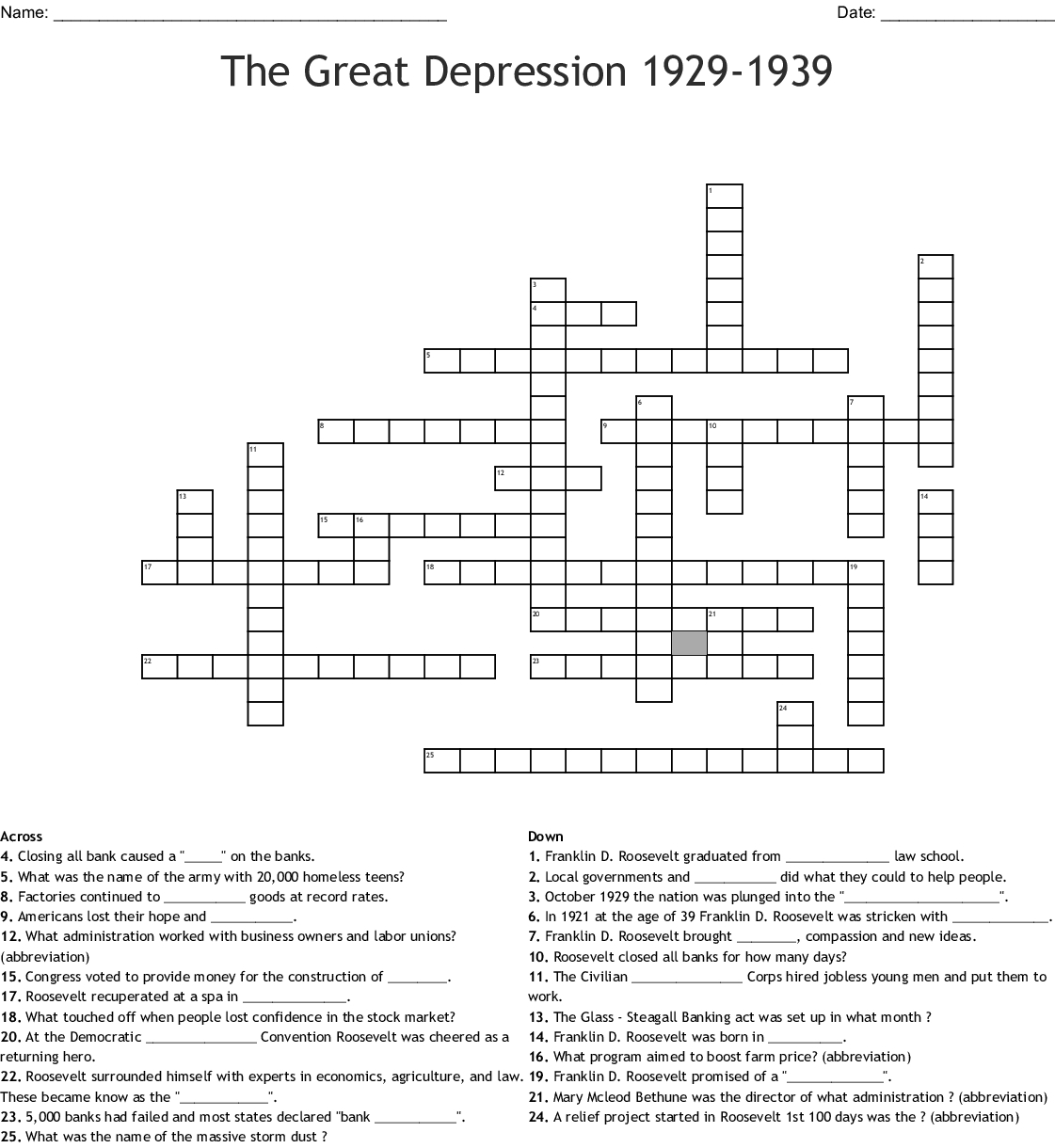 The Great Depression 19291939 Crossword Word — Db Excel With Regard To The Great Depression Worksheet