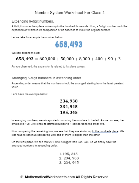 Number System Worksheet For Class 4 - Mathematicalworksheets For The Number System Worksheet