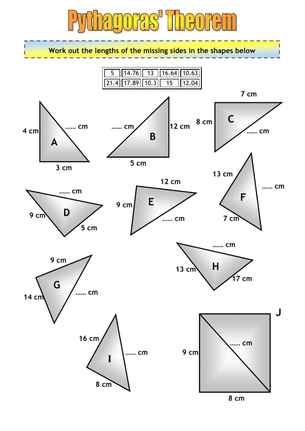 The Pythagorean Theorem Worksheet