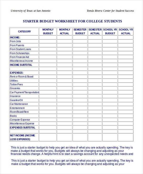 It can also help a student to better understand the details of their financial situation. By breaking down their income and expenses into categories, they can gain a better understanding of their overall financial picture. This insight can help them to make more informed decisions when it comes to budgeting and spending.
