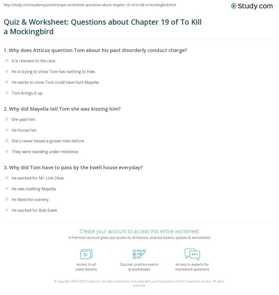 Quiz & Worksheet: Questions About Chapter 19 Of To Kill A Mockingbird For To Kill A Mockingbird Worksheet