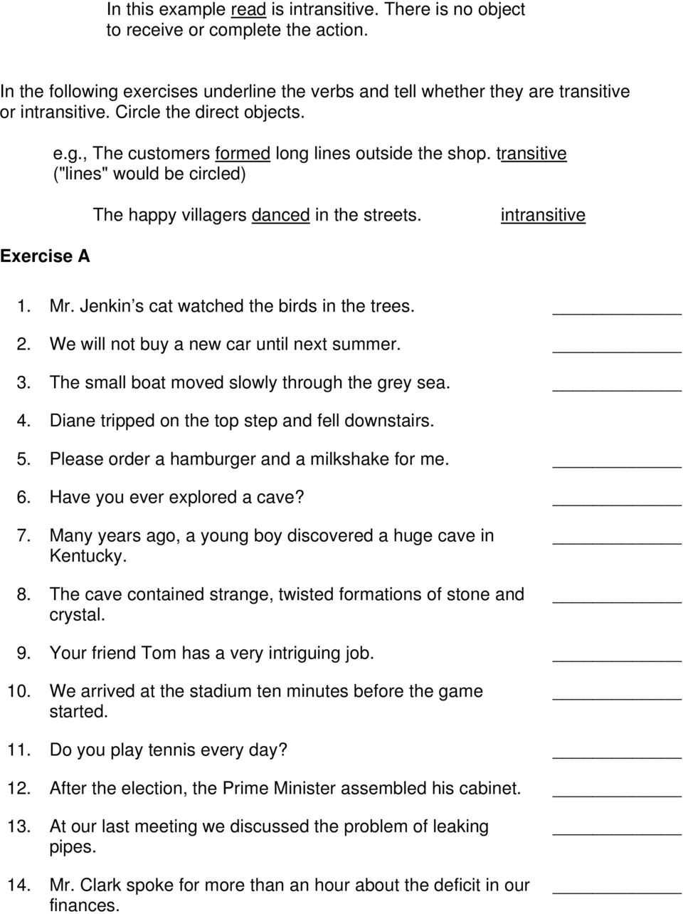 5 photos of the "Transitive And Intransitive Verb Worksheet"