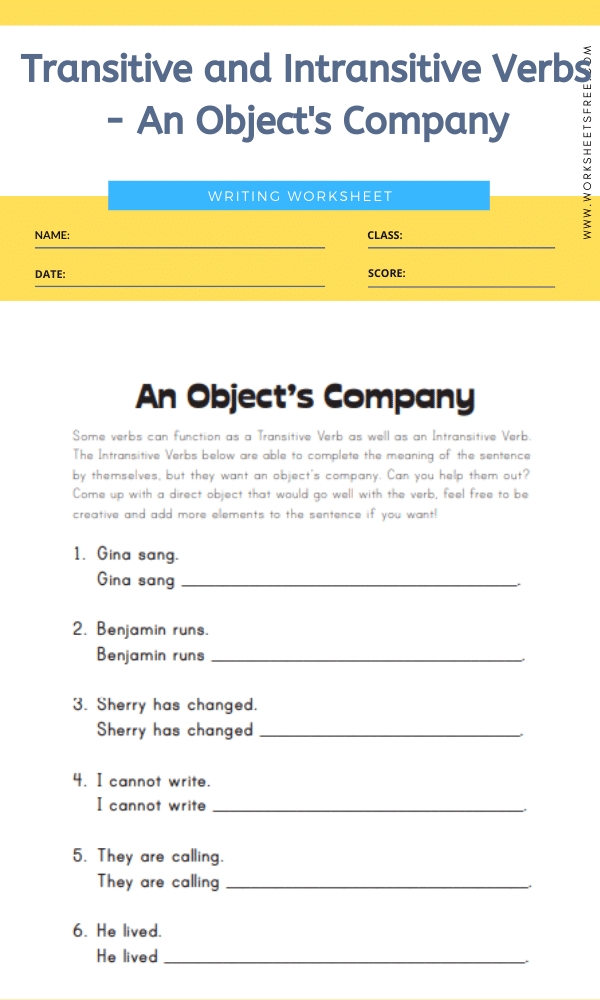 Transitive And Intransitive Verbs - An Object'S Company | Worksheets Free With Transitive And Intransitive Verb Worksheet