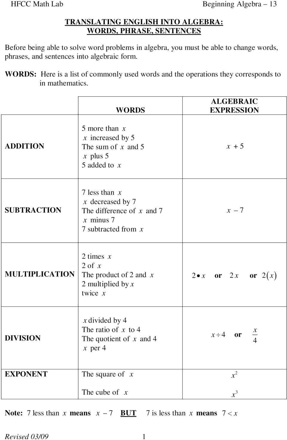 When translating algebraic expressions into words, it is important to be aware of potential pitfalls that may lead to incorrect translations. This worksheet will provide an overview of the common pitfalls to avoid when translating algebraic expressions.