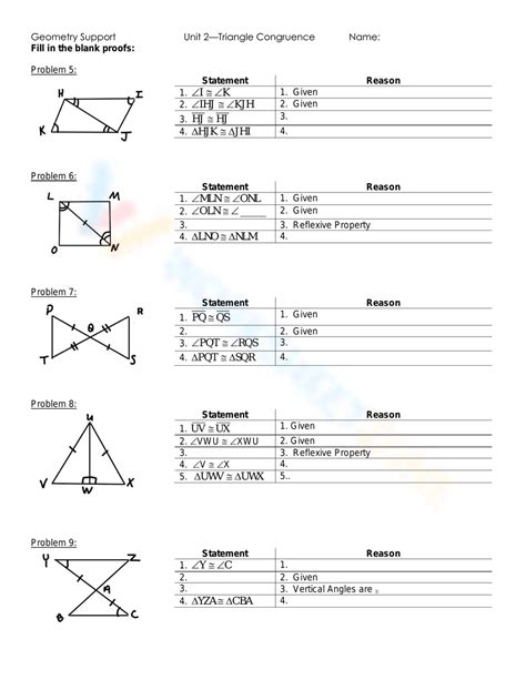 This engaging and informative worksheet will provide students with the necessary tools to understand the fundamental principles of triangle congruence, and how to apply them to create their own proofs.