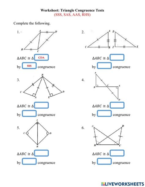 The Triangle Congruence Worksheet Answers are an excellent resource for students to learn the various methods of triangle congruence. Through this worksheet, students can explore the various types of triangle congruence, such as SSS, SAS, ASA, and RHS congruence.