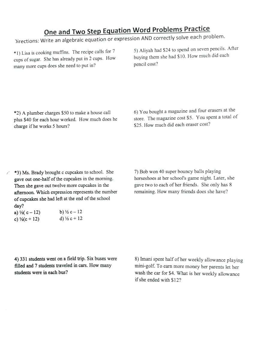 3 photos of the "Two Step Equations Worksheet Pdf"