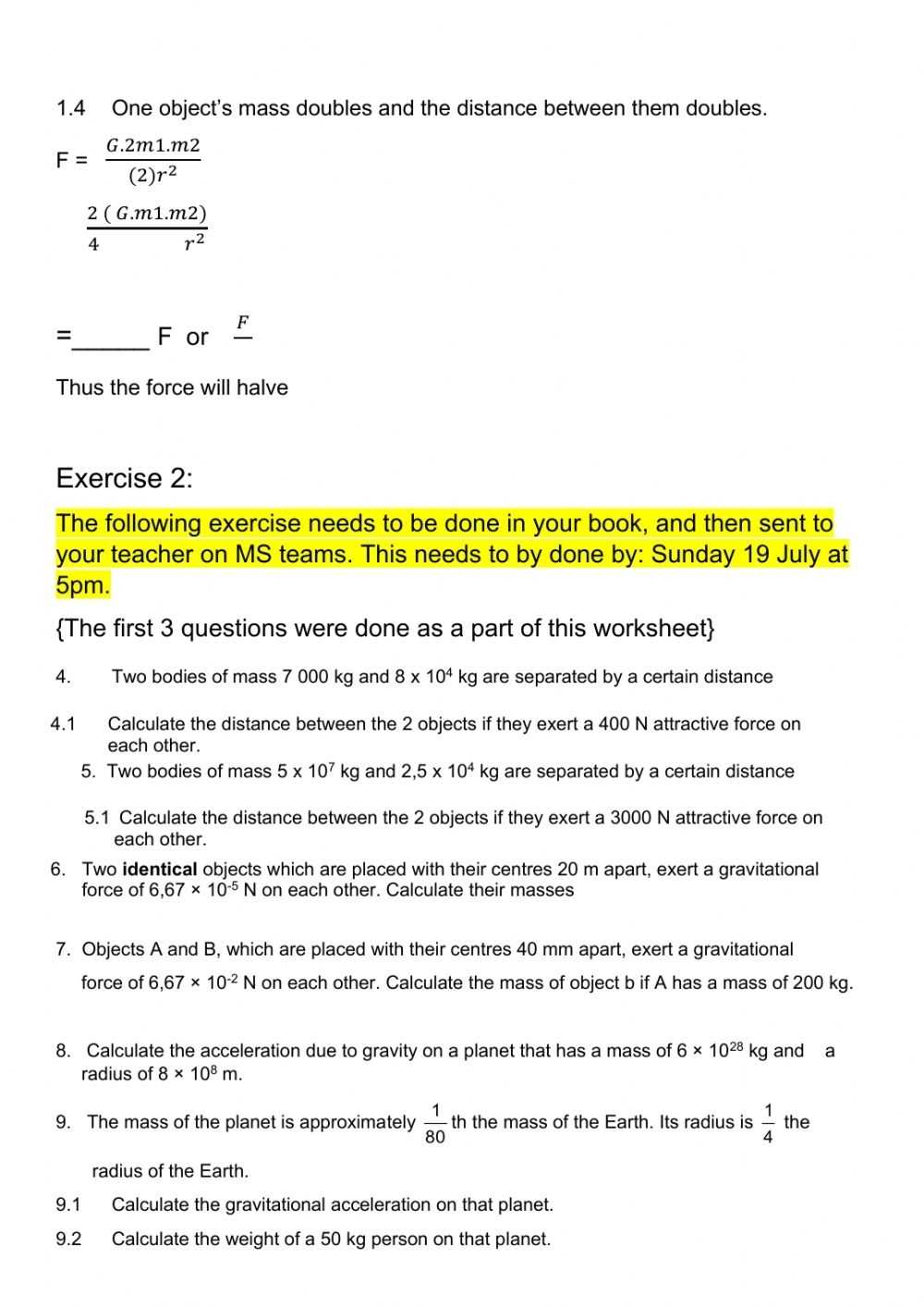 Examining the Laws of Universal Gravitation with Worksheet Answers