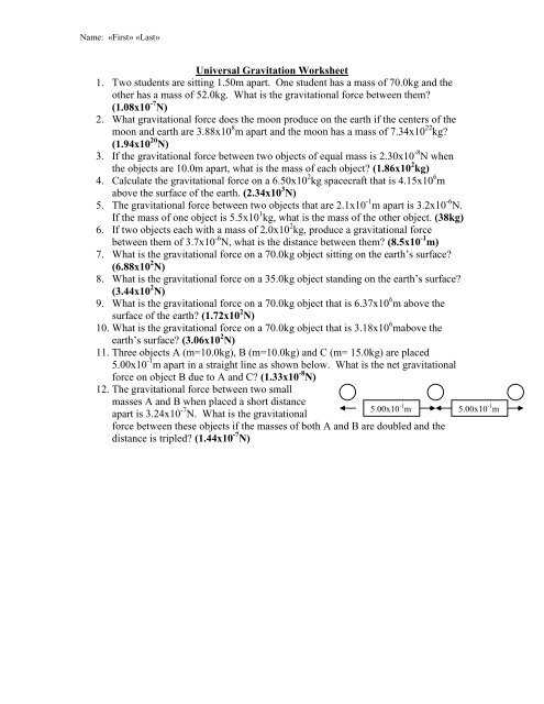 To better understand this fascinating phenomenon, we have created a worksheet answer guide. This guide will provide a comprehensive overview of the concepts and principles of universal gravitation.