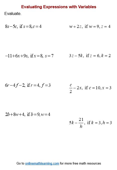 When solving variables and expressions worksheets, it is important to be mindful of common mistakes that can undermine the accuracy of the solution. One common mistake is failing to adhere to the correct order of operations. This involves following the rules of Parentheses, Exponents, Multiplication and Division, and Addition and Subtraction in order to solve the problem correctly. Another mistake is neglecting to check the answer for accuracy. Once the solution has been calculated, it is important to check that it makes sense in the context of the problem.