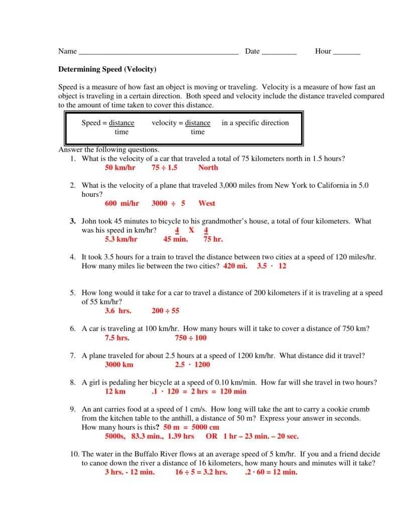 Determining Speed Velocity Worksheet Answers — Db Excel In Velocity Worksheet With Answers
