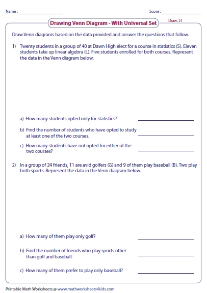 Venn diagrams are an invaluable tool for helping students to understand mathematical concepts and strengthen their math skills. These diagrams, which consist of two or more overlapping circles, are often used to represent the relationship between two or more sets of data. Venn diagram word problems are particularly effective in helping students to develop their problem-solving abilities and to apply their knowledge of math in a practical context.