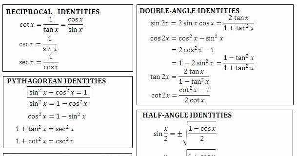 Pythagorean identities are equations based on the Pythagorean theorem, which states that the sum of the squares of the sides of a right triangle is equal to the square of the hypotenuse. These identities are used to simplify equations that involve sines, cosines, and tangents. Angle addition identities are based on the fact that the angles of a triangle can be added up to 180 degrees. They are used to simplify equations that involve the sum or difference of two angles. Double angle identities are based on the fact that the double of an angle is equal to two angles added together. These identities are used to simplify equations involving the double of an angle. Half-angle identities are based on the fact that half of an angle is equal to the angle divided by two. These identities are used to simplify equations involving the half of an angle.