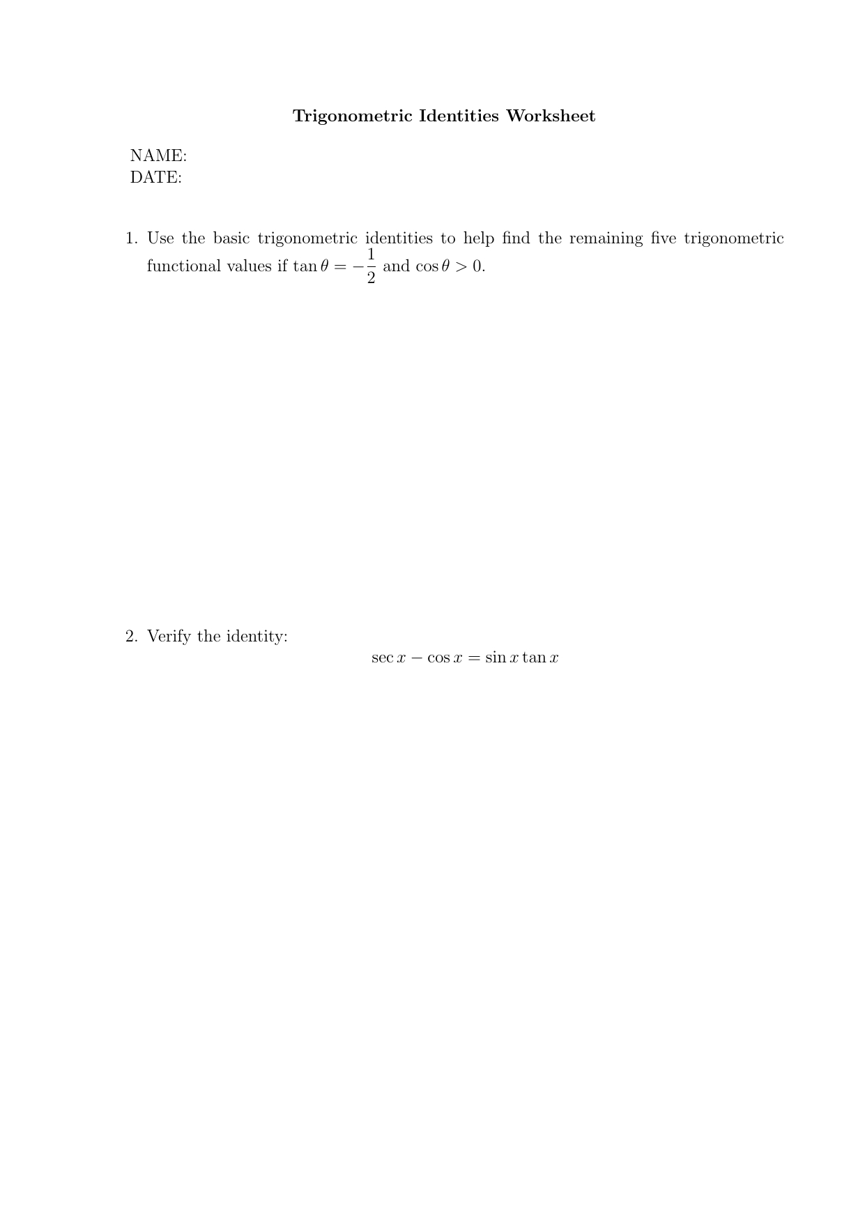 Verify Trig Identities Worksheet Pertaining To Verify Trig Identities Worksheet