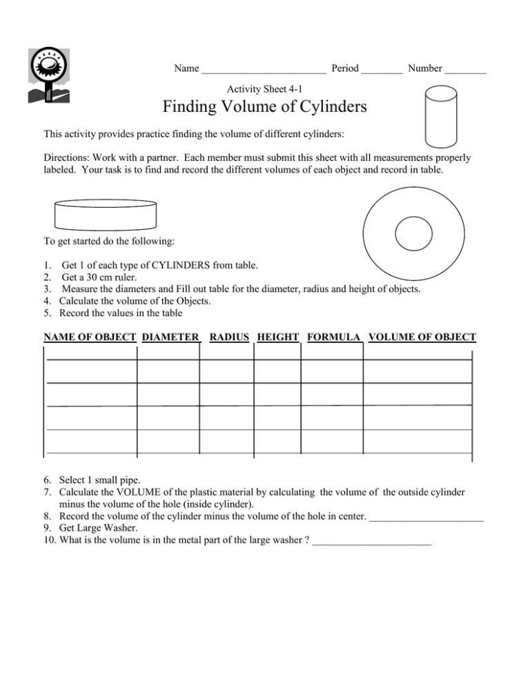 Volume Of A Cylinder Worksheet Pdf — Db Excel Within Volume Of Cylinders Worksheet