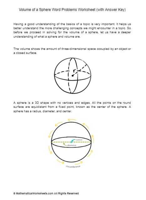 Volume Of A Sphere Word Problems Worksheet (With Answer Key With Volume Word Problems Worksheet