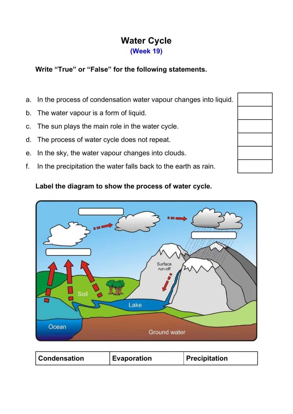 Finally, water cycle worksheets can be used to assess student progress. By having students answer questions at the end of each worksheet, teachers can quickly evaluate if students have mastered the material. This helps teachers determine which concepts need to be revisited and which should be emphasized more in the future.
