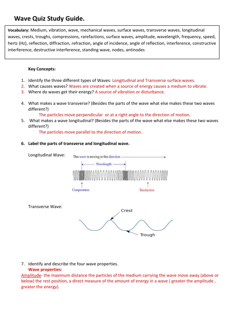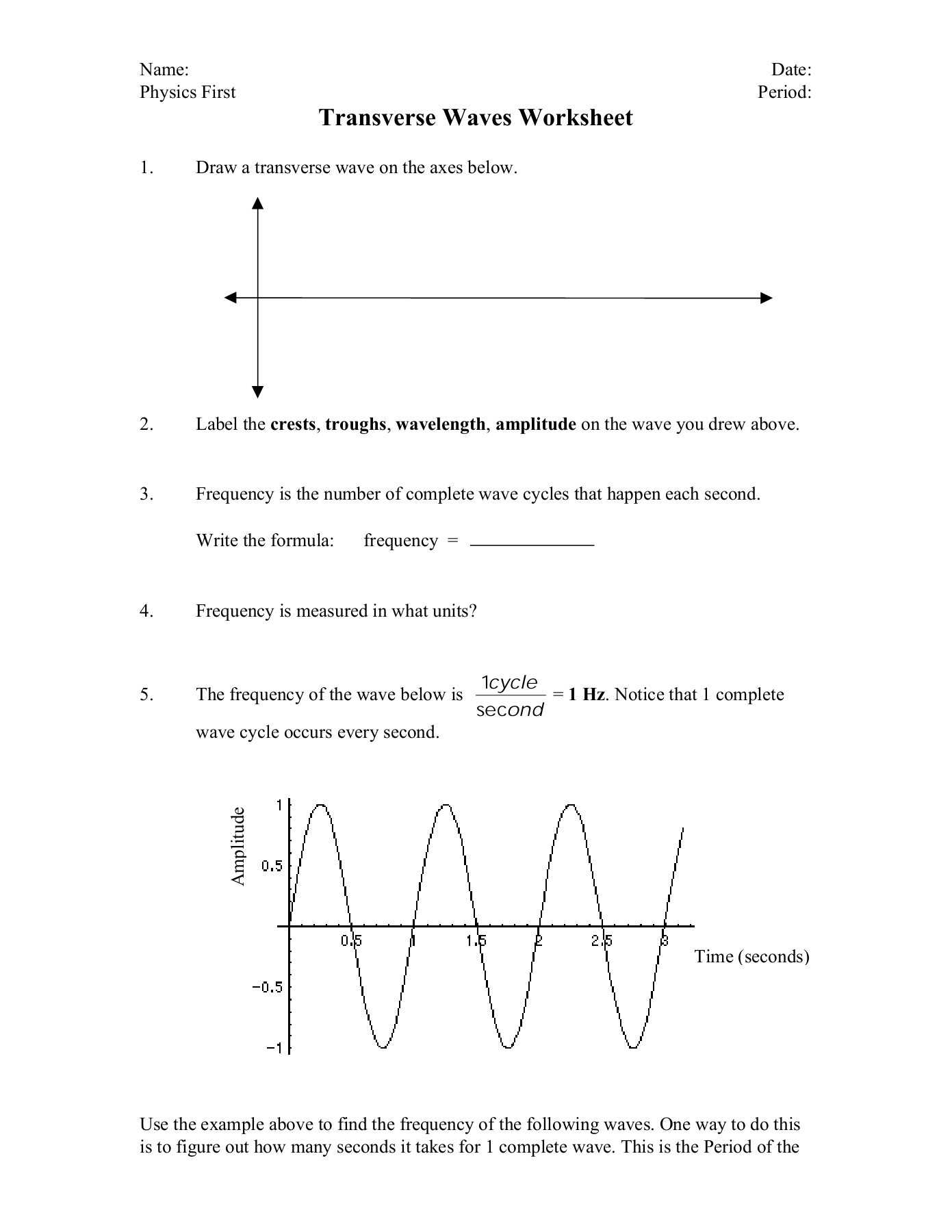 Waves 1: Intro Worksheet In Waves Worksheet 1 Answers