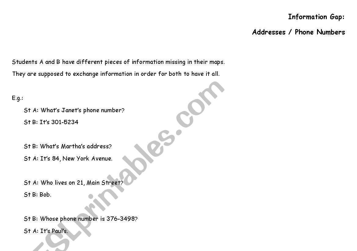 Phone Numbers And Addresses - Information Gap Exercise With Regard To Whose Phone Is This Worksheet