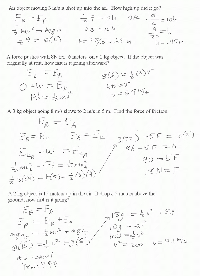 Work and energy worksheets can also be used to develop analytical skills. By having students work through equations, they can learn how to use data to draw conclusions and make decisions. This skill can be applied to a wide range of real world problems, such as calculating the speed of an object based on its mass and distance.