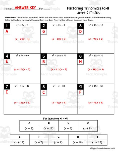 By thoroughly understanding the process of factoring trinomials, as well as having the opportunity to practice with the worksheet provided, students should be confident in their ability to factor trinomials correctly.