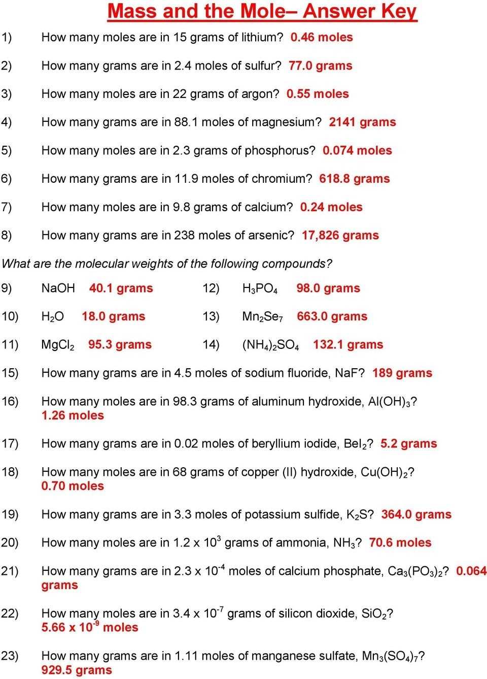 In conclusion, the answers to the Mole Problems worksheet can be used to gain a better understanding of the mole and its relationship to other units of measure. Through a better understanding of the mole, students can use the answers to this worksheet to help them understand more complex concepts in chemistry.