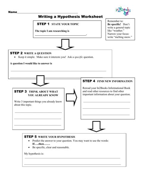 5. Making assumptions: A hypothesis worksheet should be based on evidence. When writing a hypothesis worksheet, it is important to avoid making assumptions that may not be supported by evidence.