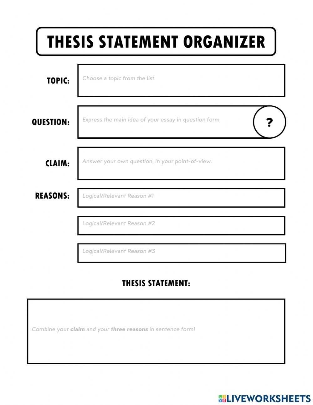2. A writing a thesis statement worksheet can help to ensure that the thesis statement is well-supported and logically organized. By providing a list of evidence and a structure for the thesis statement, the writer can ensure that their argument is well-crafted and well-supported.