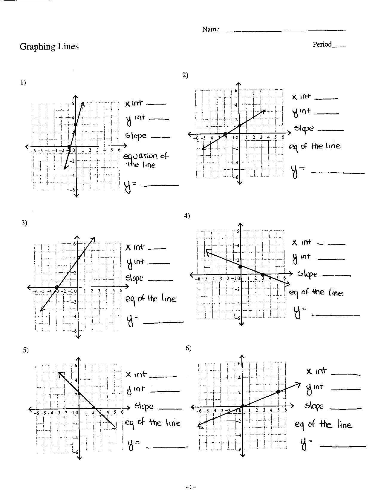 2. Slope-Intercept Form Worksheet: This worksheet covers the basics of writing equations of lines in slope-intercept form. It includes identifying the slope and y-intercept, writing equations of lines in slope-intercept form, and graphing lines from their equations.