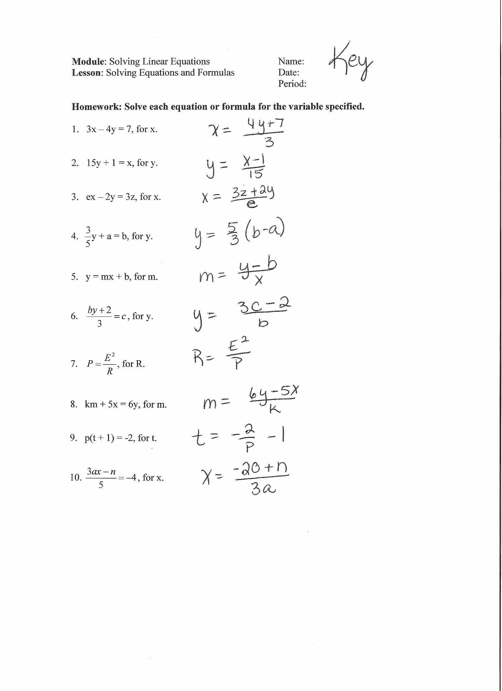 50 Literal Equations Worksheet Answer Key | Chessmuseum Template Library Regarding Writing Two Step Equations Worksheet